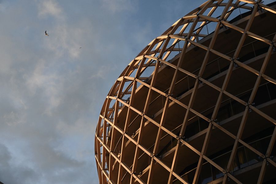 Het vrij-vorm exoskelet, gemaakt van Accoya houtcomponenten, omvat het gehele hotelgebouw, dat gebaseerd is op het casino van het gebouwencomplex. De vorm doet denken aan een havensjorring die wordt gebruikt voor het aanmeren van schepen en is een absolute blikvanger aan de Belgische kust.